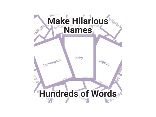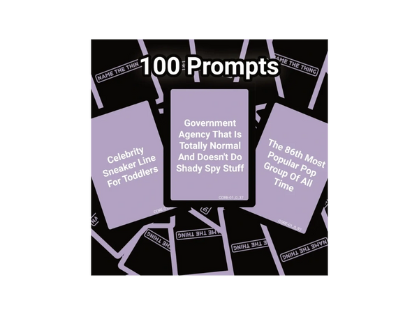 Take turns reading prompts, judging names, and thinking up names to vie for the best names for things! Can you be the wittiest of your friends and name all the things?